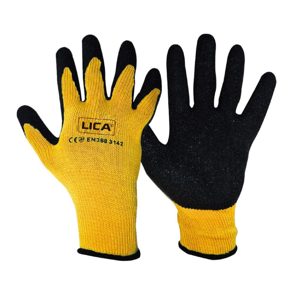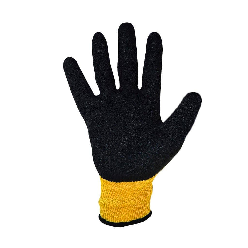 Cotton-Polyester knitted liner crinkle latex palm coated safety work gloves.