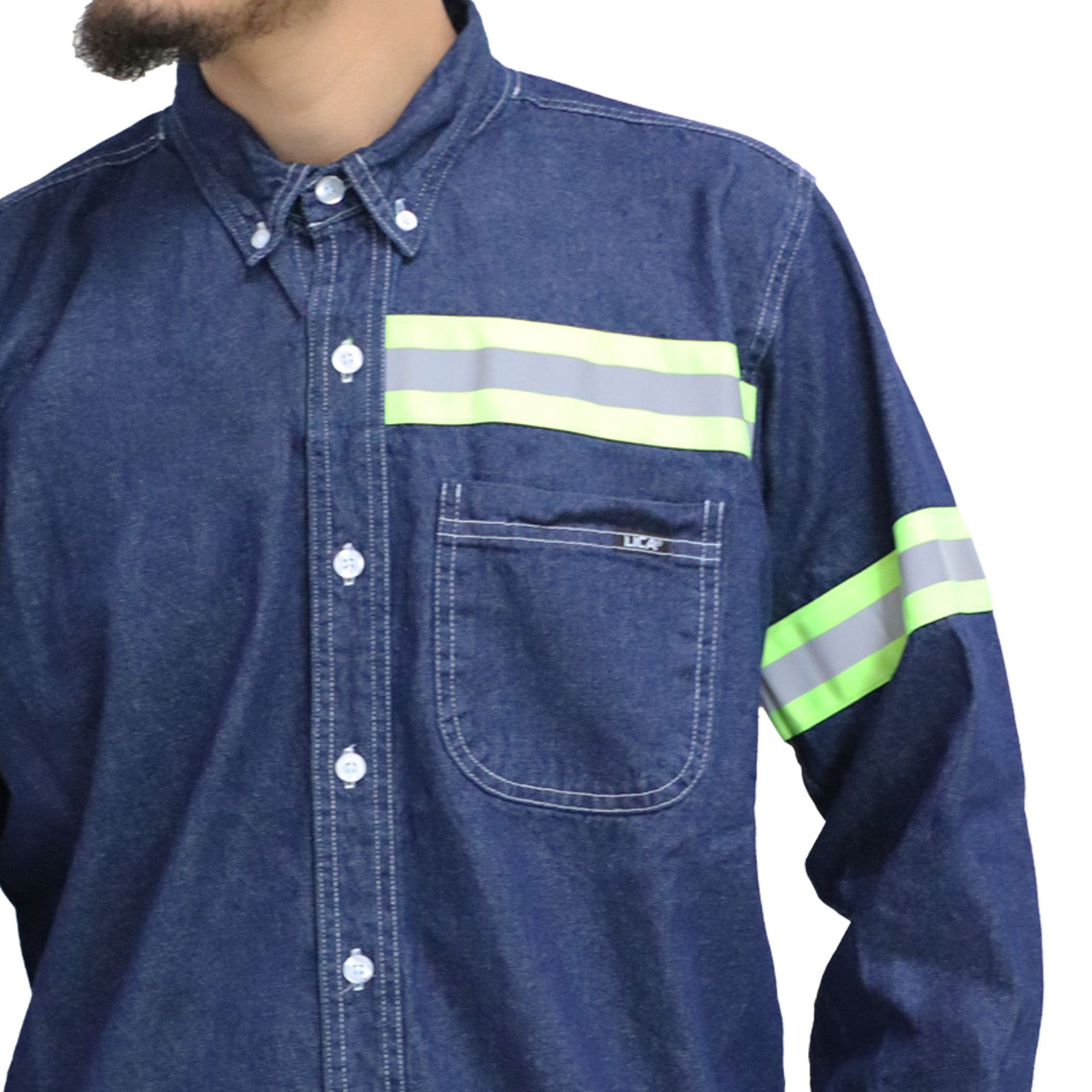 Denim shirt with reflective tapes
