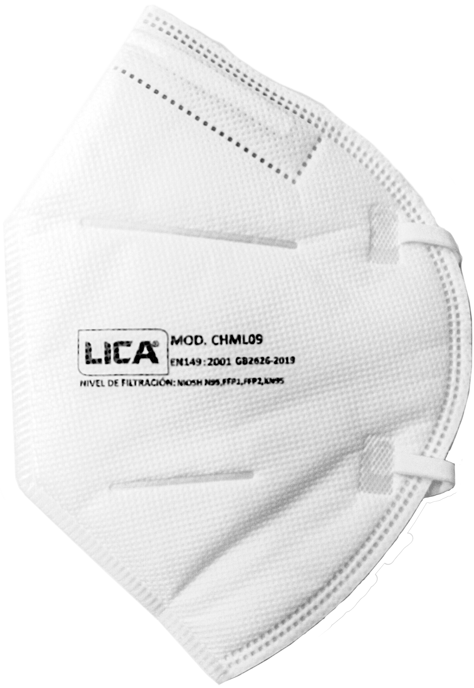 LICA foldable particulate respirator mask CHML09 in 100% polyester with minimum 95% filtration efficiency. Certifications: EN149:2001+A1:2009 and GB2626-2006.