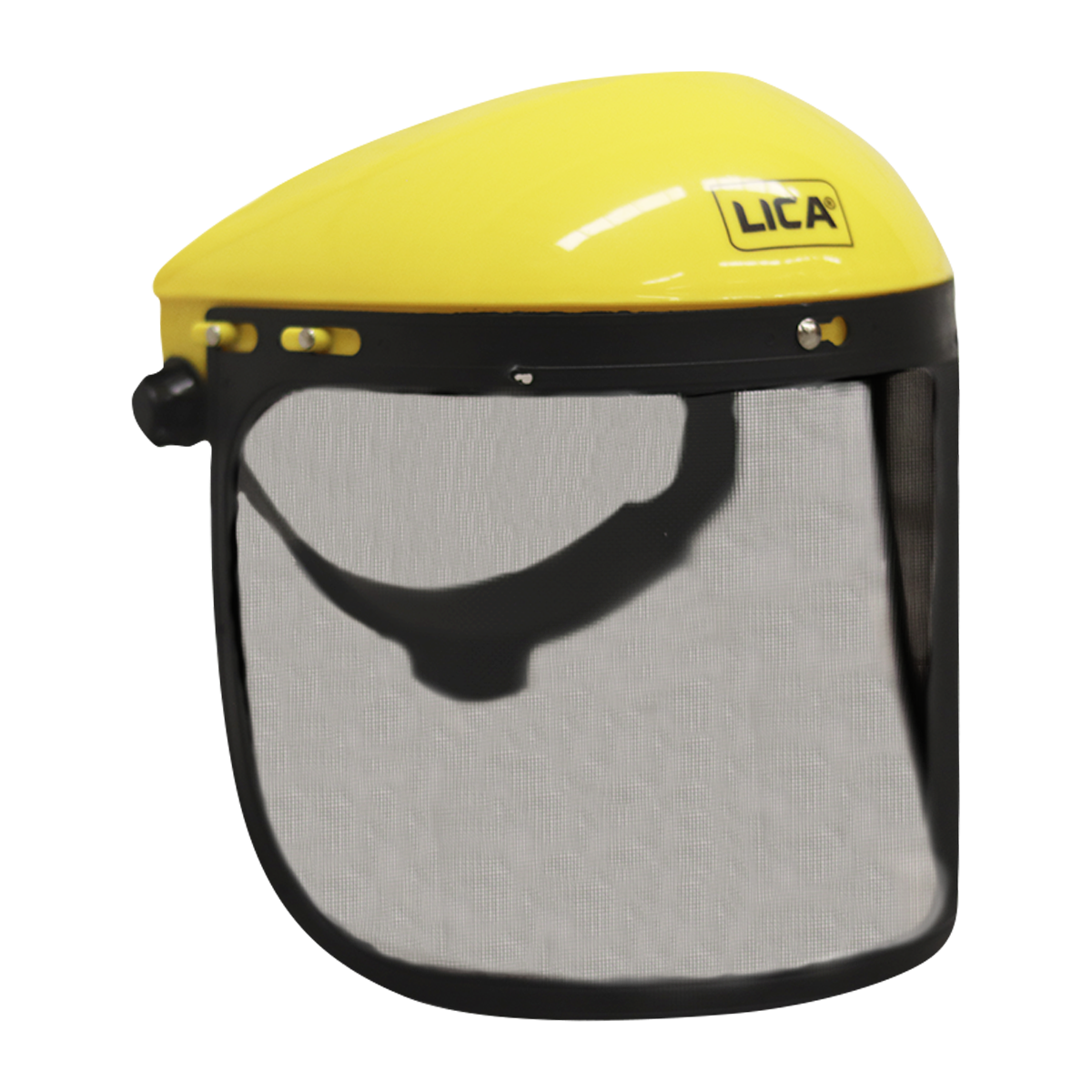 LICA wire mesh face shield Mod. PF-MALLA protects face and eyes from particle projection with full ventilation and ratchet adjustment. Certified under ANSI Z89.1.