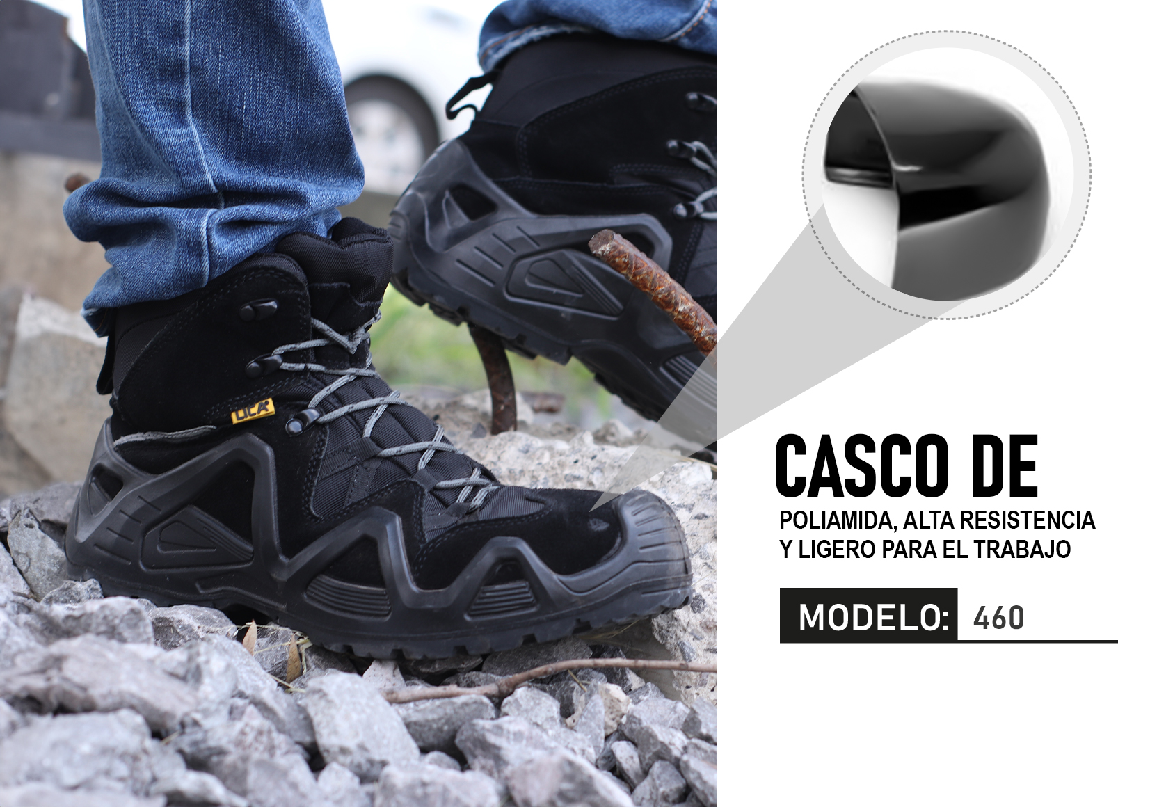 El modelo 460 está equipado con casquillo de poliamida dieléctrico que supera los estándares al soportar impactos de hasta 101.7 J y 14,000 voltios. Cuenta con plantilla anti-perforación para evitar cualquier accidente con objetos punzo cortantes; suela anti derrapante que brinda resistencia a la abrasión, al impacto y a la compresión, que garantiza una larga vida útil incluso en los entornos más desafiantes.