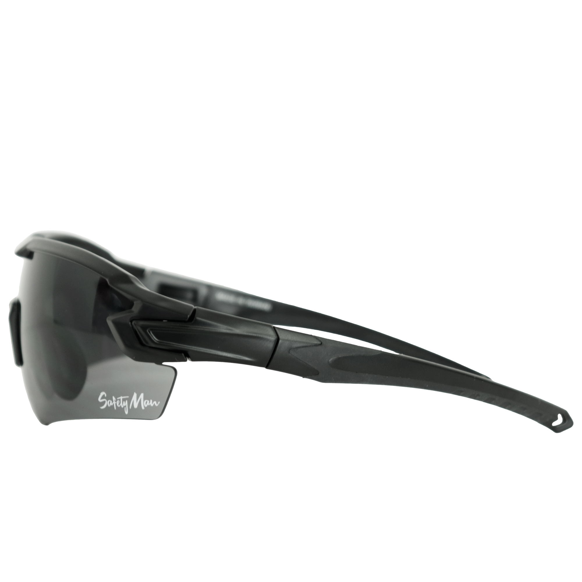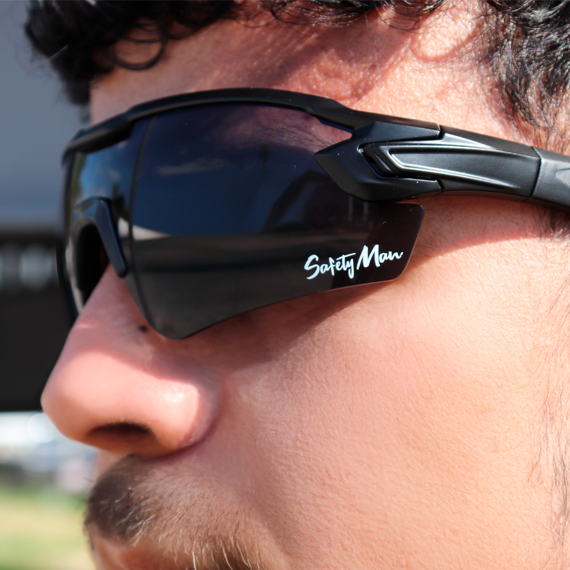 El lente de seguridad mica negra Mod. TACTIC-SM-N protege los ojos con policarbonato 100%, protección UV385 y diseño táctico Safety Man con correa elástica incluida. Marca Safety Man para más información sobre normatividad visita la STPS.