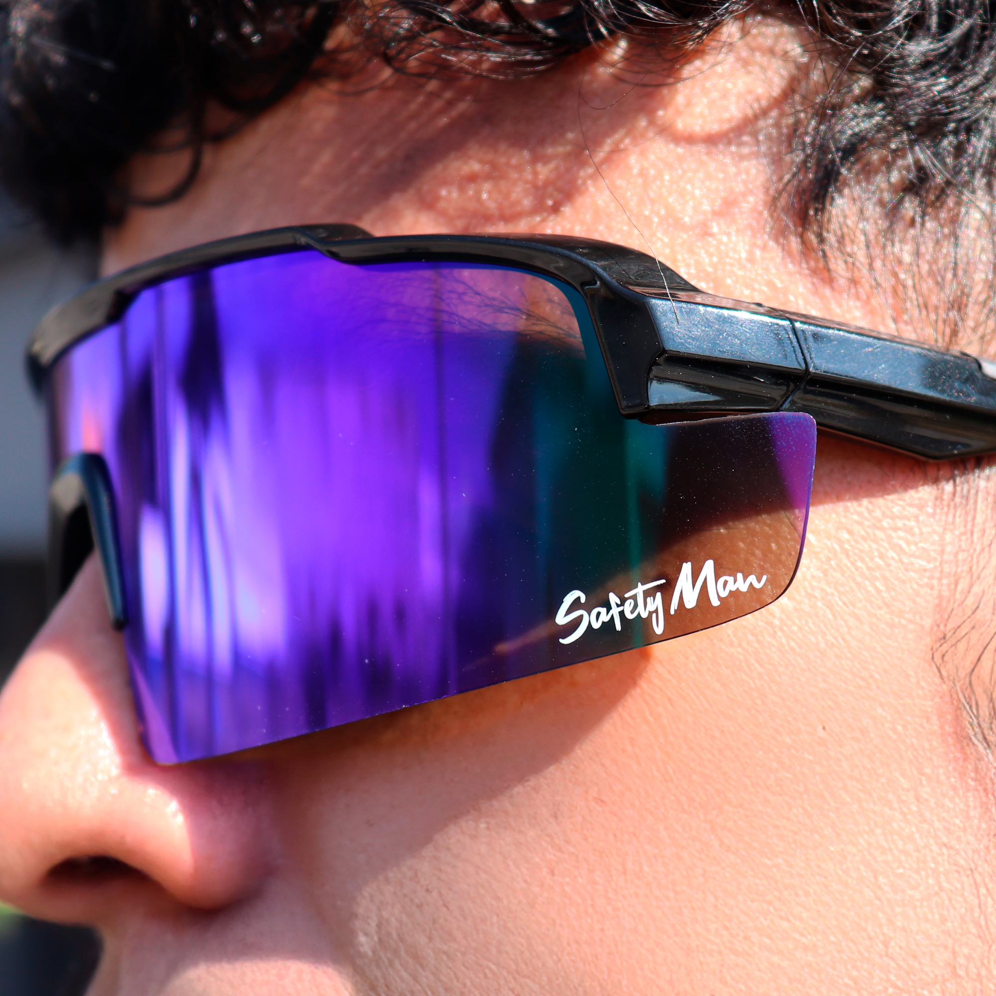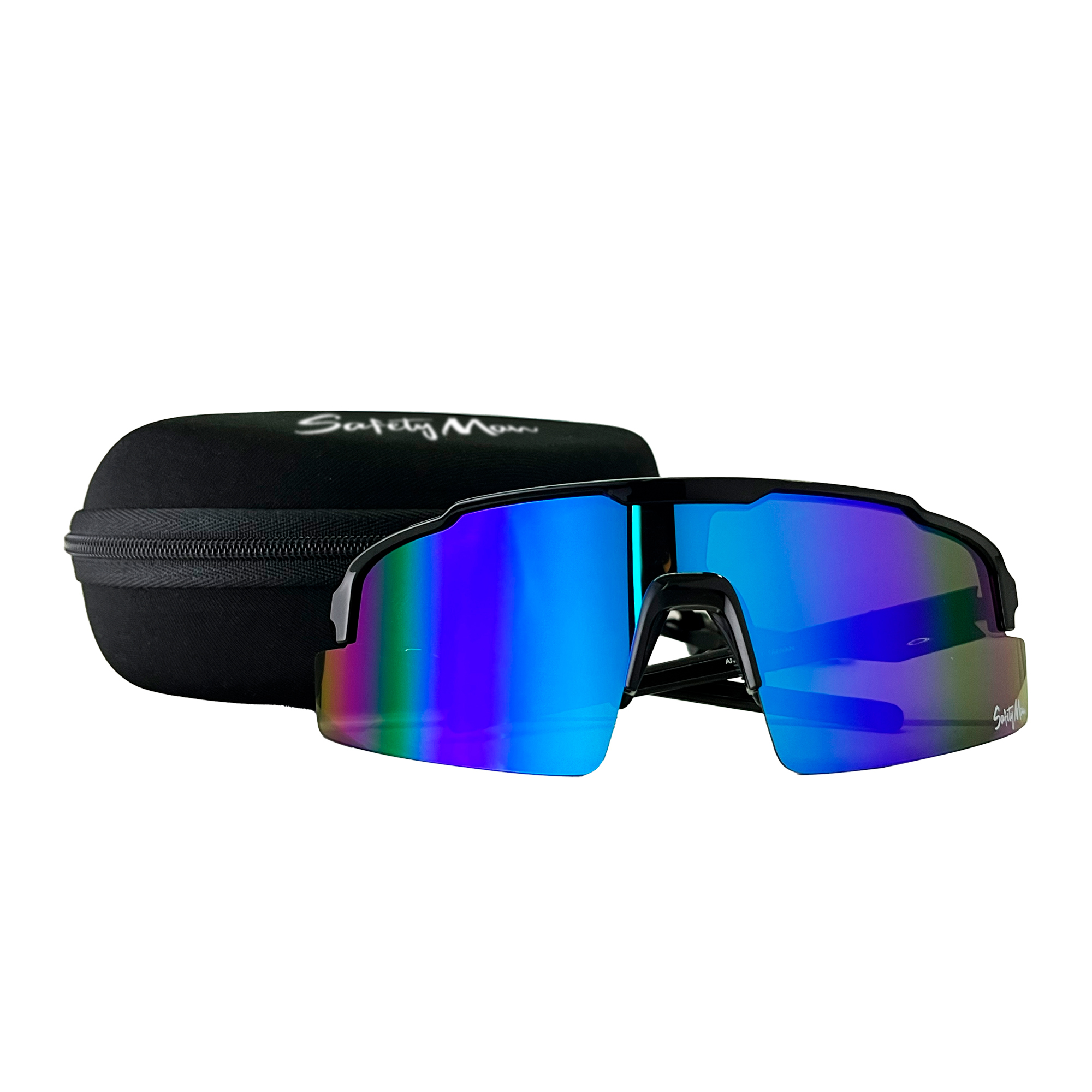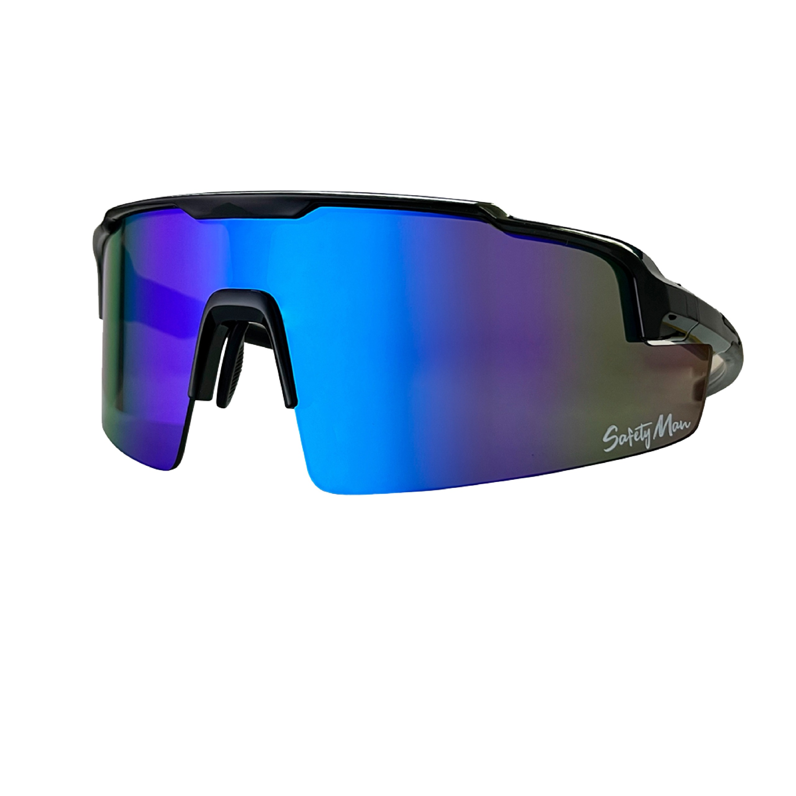 El lente seguridad mica REVO azul Mod. RUNNER-SM-AZ protege los ojos con policarbonato 100%, recubrimiento REVO azul, protección UV400 y diseño Safety Man. Marca Safety Man para más información sobre normatividad visita la STPS.